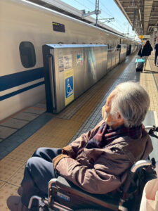 当日は東京駅から駅員さんにサポートしていただき、新幹線のフラットタイプのシートで新大阪駅へ。